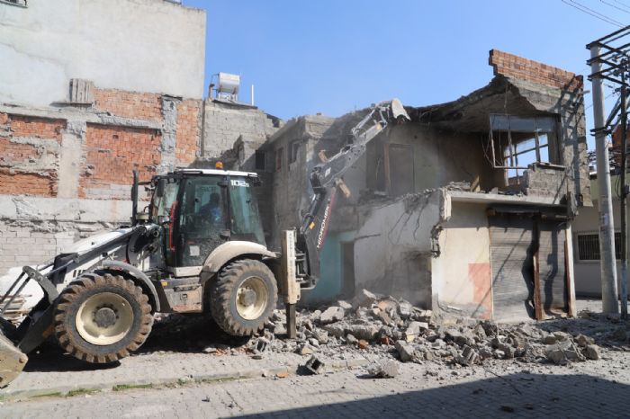 Akdeniz’de, metruk binalar kontrollü şekilde yıkılıyor