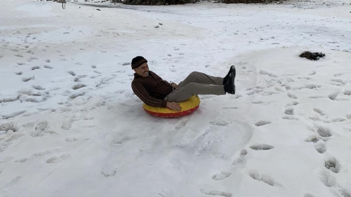 Toroslar’da kar güzelliği: Çocuğu da yaşlısı da doyasıya eğlendi
