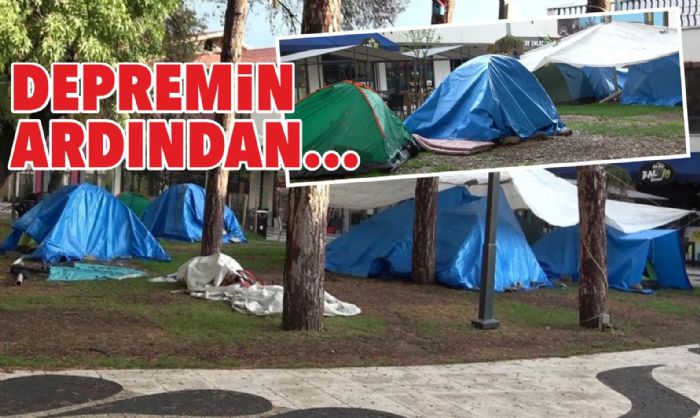 Deprem sonrası evlerine girmeye çekinen vatandaşlar, çimenlik alanlara ve parkların uygun noktalarına kurdukları çadırlarda kalmayı tercih etti. Arabası olan bazı kişiler ise pazar yerlerine ve açık otoparklara çekilerek araçlarında sabahladı.