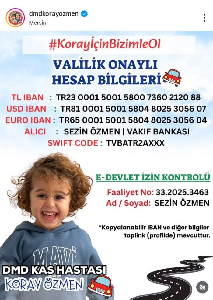 Destek için valilik onaylı IBAN…
