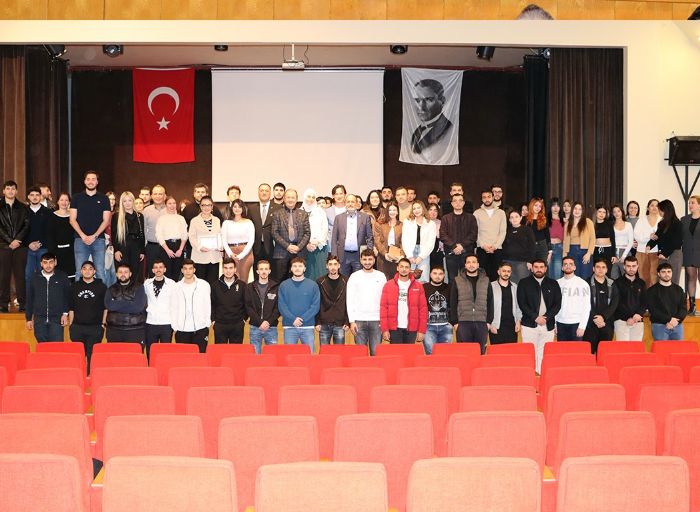 Gümrük Müşaviri Arif Şengel, gümrük müşavirliği mesleğinin uzun ve zorlu bir eğitim sürecine dayandığının altını çizerek, “Yıllar önce alaylı olarak bu mesleğe girip yetki belgemi almış. 40 yıldır da bu işin içerisinde ilmek ilmek tırnaklarımızla gelmiş bir gümrük müşaviri olarak karşınızdayım.Gümrük müşaviri şirketinde veya gümrük müşaviri olmak istiyorsanız, mezun olduktan sonra bir gümrük müşaviri şirketinde sigortalı olarak staj yaparak hayata atılmanız gerekiyor.Bir yıllık staj süresinden sonra gümrüğün açmış olduğu ilk sınava girerek yüzde 65 oranında sadece yazılı sınavı kazanarak, gümrük müşaviri yardımcısı olabiliyorsunuz. Diplomayı aldıktan sonra gümrük müşavirlik şirketinde en az 2 yıl sigortalı olarak çalışacaksınız. Gümrük müşavirleri derneğine üye olacaksınız ve bunu belgeleyeceksiniz.Bilgi ve birikiminizi gümrük müşavirlik şirketlerinde çalışarak elinize aldığınız evrağı tanıyarak gümrüğe götürdüğünüz evrağın faturanın mülk beyannamesinin ihracat beyannamesinin bir soru sorulduğunda cevabını verebilecek düzeye gelebilecek noktada kendinizi yetiştirerek hazırlamanız gerekiyor.Bu süreçte diploma tek başına yeterli değil. Okuldan mezun oldunuz ama bir şirkete girip çalışacaksınız. Temelden bu işin mutfağından affedersiniz ayakçılık diye tabir ettiğimiz yani evrak götür, getir. Ondan sonra gümrüğe, firmaya, acenteye, limana git.Bu gidiş gelişlerde sizlerin mesleği sorgulamanız, katlanmanız gerekiyor ki öğrenirsiniz. Yaptığınız işi, götürdüğünüz işi sorgulamazsanız, bilerek yapmazsanız sadece memur zihniyetiyle gidip gelirsiniz. İmtihanda başarısız olursunuz. Gerçekten çok zorlu bir süreç.” diye konuştu. Program, plaket takdimi ve günün anısına çekilen toplu fotoğraf ile tamamlandı.