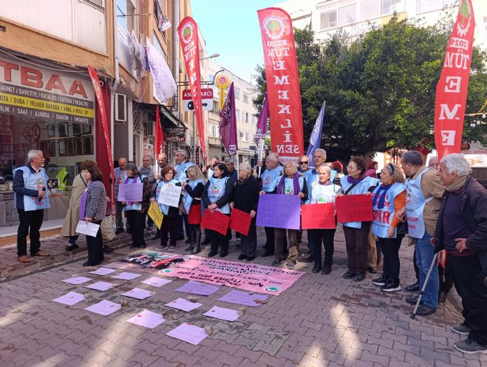 2021 Tüm Emekliler Sendikası Mersin Şubesi üyeleri, 8 Mart Dünya Emekçi Kadınlar Günü kapsamında yaptıkları basın açıklamasında yoksulluk, şiddet ve savaş politikalarına tepki gösterdi. Sendika Kadın Sekreteri Sıdıka Gündüz, emekli kadınların insanca yaşam, eşitlik ve barış taleplerini dile getirdi.